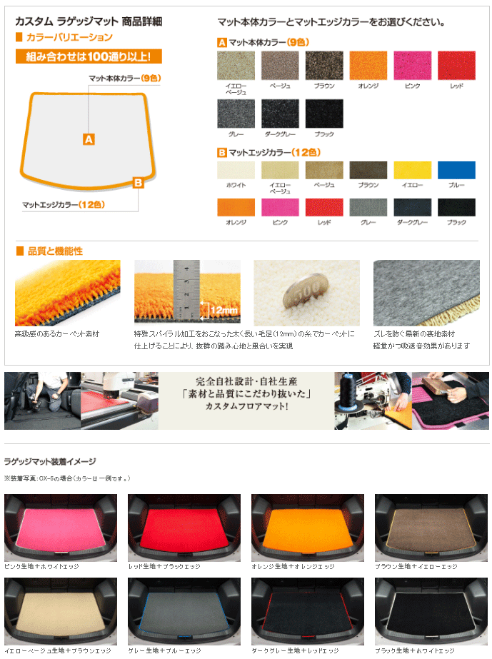 ・カラーバリエーション メニューより要選択 ●マット本体カラー マット全体の生地ベース色 ●マットエッジ縁カラー マット周囲のフチの色 ※色味やイメージはご覧のモニター環境によって異なりますので、返品や交換の事由にはなりません。