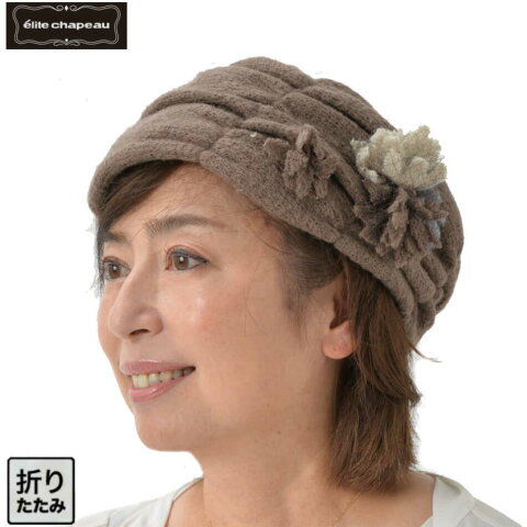 【送料無料・メール便対応】帽子 レディース ハット ニット 秋 冬 秋冬 室内帽 ニット帽 ワッチ ビーニー ミセス シニア ギフト プレゼント おしゃれ かわいい フリーサイズ 折りたたみ 旅行 白髪隠し 薄毛隠し エリートシャポー