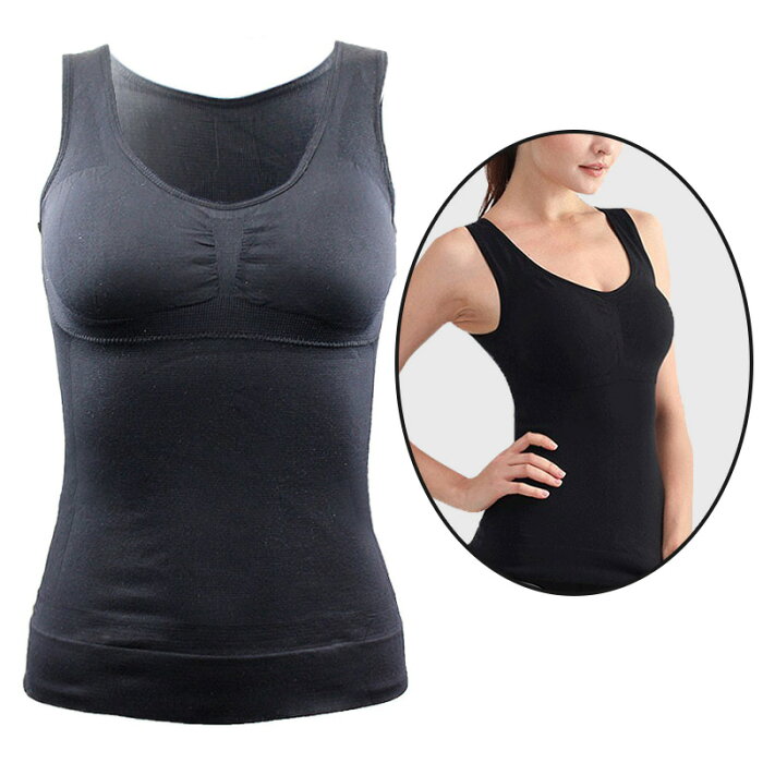 お得2点セット タンクトップ カップ付き ブラトップ 締め付けない 着心地いい 伸縮性 着脱しやすい ノンワイヤー アンダーゴムなし お腹 引き締め くびれ 脇肉 加圧 シャツ レディース ボディシェイパー 補正下着 インナー 大きいサイズ メール便送料無料