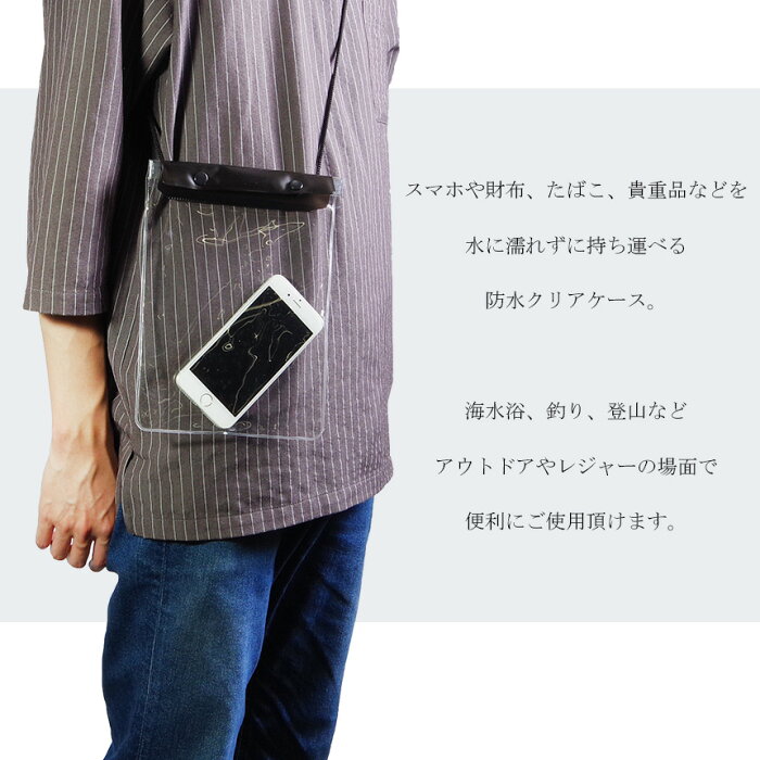 ■商品説明 スマホや財布、たばこ、貴重品などを 水に濡れずに持ち運べる防水クリアケース。